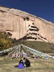马蹄寺内让人惊绝的是绵延三十公里的石窟群。我们在进门不远处的千佛洞耽搁太久,秋日寒风瑟瑟,国庆游客多得开始排队入场。很多攀岩项目等着你!