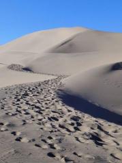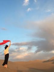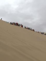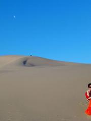 敦煌鸣沙山是非常舒服的景点,坐在沙山上很舒服,沙好细,风吹就飞,看不到,但回去就一头沙。爬上去好累的!已是弟二次去了!寒假与暑假各去了,虽然夏天有滑沙但人太多了,我喜欢冬天去,儿子喜欢夏天去。冬天去经济很多,住得好又平宜,因为是淡季。