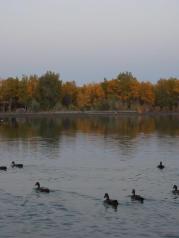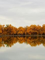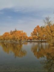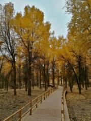 原本金塔胡杨林,我没有确定是否要去。但在张掖时,几位旅游的老人却竭力推荐。反正要路过那里,就决定看看。 去金塔胡杨林时,天气并不太好,是阴天。但一进景区,同样给了我极大的震撼。这里同样展示了、浓墨重彩的秋! 金塔胡杨林是为抗风沙而种植的人工林,种源来自额济纳。额济纳的胡杨林是天然的,狂野、奔放、虬劲、沧桑。与额济纳的胡杨比较,金塔的胡杨是年轻的,充满着活力,充满着朝气。因为是人工林,所以就多了一些园林式的设计:亭、台、楼、榭,小桥流水,栈道,人工湖,还有放养的鹅和鸭子…… 金波湖,自然是金塔胡杨林最精华的部分,四周全是金黄的胡杨。而湖中的倒影,更是让景色灵动起来,跳跃起来! 当然,你也可以顺着