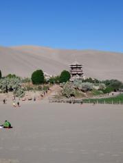 月牙泉小镇是敦煌市新兴的一座旅游观光、休闲与商贸区域。是作为敦煌旅游的一个市政配套旅游设施,为完善整个鸣沙山月牙泉以及莫高窟的旅游配套而服务的。 整个月牙泉小镇功能区域划分明显,主要是分为停车场、自驾游路线与商务用车超市、特色餐饮服务区、文化旅游商务区、特色小镇模型展览区域以及特色客栈商住区。整个配套设施非常的完善,作为敦煌市旅游发展的一个比较成熟的旅游功能区域算是非常成功的了。 这座月牙泉小镇距离鸣沙山-月牙泉国际旅游观光名胜区仅仅3公里的路程、到佛教翻译家的诞生地的雷音寺仅仅几百米之遥,而到莫高窟历史文化古迹也就十几公里的车程,交通与区位优势非常的明显。作为来敦煌深度游与休闲游的地方,月牙
