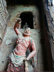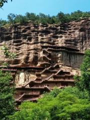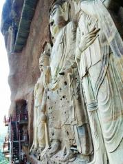 1. 我是从天水火车站出发到麦积山石窟的,34路车,票价5元,在火车站十字路的站台坐车。11月1号,应该算是淡季,在中途总共七人的公车,六人到站了。所以感觉是我自己承包了公车,车程只有50分钟。因为天气不好,阴沉沉,所以游人格外少。进大门之后,有旅游车送游客到景区,单程8元,往返15。如果不想坐也可以选择步行,10-15分钟到达景区。秋天的麦积山真的很漂亮,空气也好。 2.到达景区,网上买的票,再扫一次二维码,(在山下门口扫一次),就开始参观了。因为人少,行程变得特别舒心。没有人潮般走马观花,可以慢慢欣赏这人类的艺术珍宝。网上看图片、看书和这种近距离的观摩是有不同的感觉。这个更直观,身临其境,