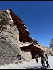 终于来到了期待已久的千年莫高窟,我是网上预订了早上十点的票,九点半达到了数字中心,观看了千年莫高和梦幻佛宫两部电影,两部电影都很震撼,特别是球幕电影梦幻佛宫。看完电影后乘坐数字中心安排的区间车直接到达了莫高窟。导游带我们参观了八个洞窟,我混在别的小组听了五六个洞窟,其中印象最深的是第一大佛,第二大佛,卧佛窟,藏经洞,反弹琵琶,王子以身饲虎虎经变化,华尔纳盗走佛像和壁画的几个洞窟。最后还参观了陈列馆和莫高窟博物馆。了解了许多佛教知识,见证了古代辉煌的文化和绘画技巧,人们对佛国世界的向往。下午六点多乘坐区间车返回了市区。