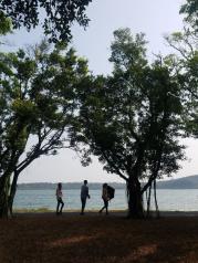湖光岩的整个形状就像一个月亮,湖边绿树成荫。我们看到一棵树旁写了一块木牌,上面写着“见血封喉”。我们继续沿着湖边漫步,接着我们来到玛珥湖火山地质火山遗址。如果湛江太热,就去湖光岩避暑里面的温度应该比外面凉快2度左右,坐的电瓶车转了一圈,风景还好,很遗憾没爬山顶俯瞰湖景,里头吃的东西少且贵,建议游览的话自己带够吃的