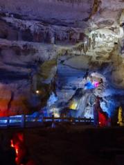 太极洞景色不错,自然风光值得一游。 就是节假日太挤了(幸亏是10.3了)!取预订的门票要排队(30分钟日光浴),水洞游船要排队(1小时一字长蛇阵),取景拍照、出洞返回要排队,就是上个卫生间也要排队,整个一人挤人啊! 还好管理还算有序,玩得还是尽兴的!值得推荐(要避开节假日高峰哦!