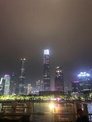 夜游珠江是不能不去的。广州有很多个码头,比如广州塔码头,大沙头码头,天字码头,订票一定要看清楚。我订的是广州塔码头的船,晚上9点40的航班,穗水08号,其中1楼普通舱60元,会给每人发瓶水和一包饼干。不能开窗,但是可以去船尾观景。全程约1小时。珠江的夜景整体来说还是挺不错的。