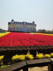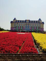 百万葵园比起以前的纯粹的花海,拥有花海的面积变小了,改建成为城堡型酒店,还有适合儿童玩的游乐场啦。适合一家大小的游乐休闲放松的地方,一百多门票不算太贵,里面一些花海还是不错的,在城堡酒店正对的花海有小火车坐,小朋友和大人都很喜欢。在酒店餐饮偏贵些,主打有葵花鸡,想要经济实惠的可以去隔壁的农庄小炒和十四涌都有海鲜吃!