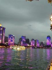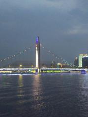 珠江夜游夜景不错,变换色彩的广州塔,两岸的灯光,游轮的微风都给人惬意的感觉,就是船长还有变脸的表演让人惊喜,夜晚的珠江远远比白天迷人,夜色遮挡了一切丑陋,剩下的全是美景。从大沙头开始,北岸的楼景灯光,几坐大桥的迷人身姿,小蛮腰的妖艳婀娜……