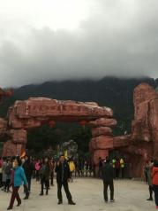 首先淡季进罗浮山人少,游玩自如。因预报有雨,怕缆车停运,我们觉得还是先登山为好。此处的工作人员很贴心,先帮我们擦干椅子,又提醒我们把双肩背包放在身前,乘坐前低头以防撞到地面的雨篷。乘缆车20分钟后,拾级而上,前方无“古人”,后边无来者,加之山上云雾缭绕,颇觉孤单,而抵达鹰嘴岩时,一阵狂风吹来,脚下的平台似被撼动,一时心生恐惧,和同伴急急退下,山上的游览只能戛然而已。好在后来并没有下雨,我们便把山下的景点细细地欣赏了一遍。
