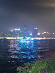 珠江夜游之于广州大约象黄浦江之于上海吧,横穿广州市区的珠江我却一直无缘在白天一睹真颜。仅在晚上去看电视塔的时候,顺道在珠江边步行了一小段。这一带正好非常热闹,灯光也还是挺漂亮的,不过见过多处城市河边夜景,我已经没有太多感叹了。