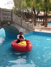 中山詹园挺大的,刚开始走到后面不大,旁边才大,里面有些比如射箭项目没开放,应该搞个导游或者语音介绍,很多东西还是能讲出点故事的,去的时候下了点小雨,到了景区就停了,人不多,园区里还有些特色手工可以体验,很不错。