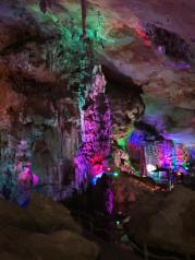 去宝晶宫的时候以为会很冷,带多一件衣服,结果进到洞中,第一层的时候,穿二件薄薄的衣服正好,上到第二层第三层的时候已经要脱掉一件衣服了。里面的三个洞很大,很高,钟乳石很多,各种形状的都有,有乌龟形状的,水果形状的,还有花朵形状的……惊叹于大自然的鬼斧神工。