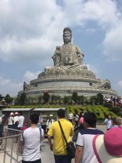 观音山国家森林公园购票后自己直接在柜机里领票了,翻过几座山才到上面,不过物有所值。山上空气不错,天气也很好!适合一家人来散步如果是为了爬山而来,是锻炼的好机会,山顶人很多,都是来拜观音的,很大的观音像,只是商业化很浓,山上一把香50块,上山的台阶很陡,小孩要有大人带着,总之还可以。