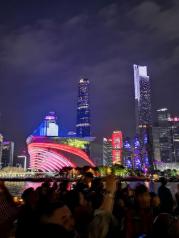 珠江夜游最后一班船赶上了,景色不错,但是船上的照片拍的比较一般,三楼平台,很凉爽,风吹得比较舒服,小蛮腰晚上的风光确实不错!赞一个,虽然路线很大众,但是算是初到广州的打卡之地了,来感受广州大都市夜景