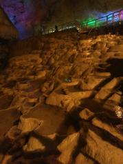 连州地下河有一个地方特别神奇的是,溶石倒映,我第一眼看过去时,就以为那里是下一层的景色,有点惊险,所以不太敢靠近,后来慢慢看,才发现原来很上面的溶石很像,是倒映,这里的空气也很好闻,最后坐船一边看一边听导游解说,感受一番地下暗河的神迹。