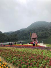 石门国家森林公园有“广州香山”之称,虽然花是人工种植的,而且凋谢了很大部分。但是花卉的面积很大,远远望过去,万紫千红,煞是好看。冬天的季节,湖水的水位很低,而且有的地方也干枯了,但是碧蓝的湖水加上绚丽的花朵,就像一幅美丽的油画。下次要找个时间,好好地把石门国家森林公园的所有景点看完。