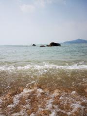 海陵岛大角湾位于闸波西南,因为成角形状,所以叫大角湾,毗邻海陵岛。风平浪静,风和日丽,沙幼细,没有太多的碎石,沙滩上的管理员非常尽职。游客一靠近水位线,管理员就噼里啪啦地吹响哨子,提醒游客注意安全,赞!水质非常好,好清,近乎没有垃圾。