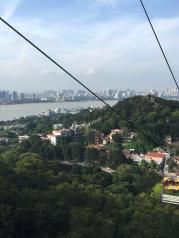 飞霞山的风景很美,适合放松心情,我们从清远坐船溯北江而上,“两岸青山相对出”,悠然直抵飞霞山。粤地山峦大都青翠,飞霞山亦然;又有北江浩荡,依山奔流;山水相伴,佳境天成,飞霞山上三教合一的飞霞洞内释迦牟尼居中,太上老君居左,孔子居右。