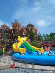 牛鱼嘴风景区前一段时间的大雨,让我们此次见的比较多的是大细的毛毛虫,全山出动,在玩的过情中,心惊惊的,水上乐园虽然黄泥水比较污浊,但不影响孩子们的兴致,也是最多人玩的项目.探险的项目也能给小孩子带来兴趣.总体来讲还是不错的,回归大自然.