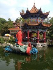 南海影视城外面看上去不大,其实里面蛮大的。上午追表演,下午看风景,门口停车十元不限时。进门就有影视演员秀,看完去看了车特技表演,精彩,观众还可以互动。再跟到水战馆看表演有很长一段距离。表演的一般般。接着马战场看三英战吕布,还可以,时间较短,节目开始前儿子还骑了一圈马,三十元。带了干粮解决午餐,下午开始江南水乡之行,还有表演,就是天气太热了。