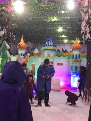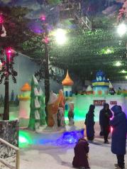 隐贤山庄很多机动游戏都可以用游金币玩,玩雪要30元每人,进去就看下冰凋,一个做雪机的地方和光头强的房子,另有一个滑道,10滑一次,服务态度很好,比如说网上买的票,服务员说你旁边服务员那里帮你弄一下,旁边服务要理不理的样子