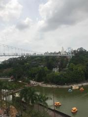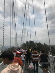 隐贤山庄玻璃桥还行吧!实在没地方去要玩,哎,不想说,玩个过山车三个多小时,就没有等了,玩了摩天轮,碰碰车就走了,人太多了,人非常的多,海洋剧场人员进出都是一个通道,很乱。游玩的项目都要排队半小时以上,玻璃桥最少要排两个小时,所以基本都没去,可惜了我买的含玻璃桥的门票了。