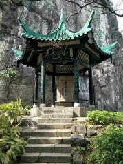 百魔洞规模宏大,巨大的石笋林立,最粗的需要几个人合抱,最高的直达40米高的洞顶,令人惊叹!在前后洞的连接处有一个巨大的天坑,坑底植物繁茂,甚至还有一颗植物界的活化石——桫椤!后洞内的钟乳石更是千姿百态,有的像雄狮,有的似猿猴,有的像山峰,有的似瀑布......在灯光的映射下色彩斑斓,使人产生出无限的遐想!最值得称道的是这里的空气,新鲜潮湿,负氧离子每立方厘米高达6万个,对于久居霾都北京的我们来说,来这里就是“洗肺”!