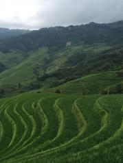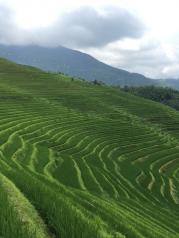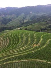 梯田处处有,但像龙脊梯田这样大规模的集中却非常少见!从流水湍急的河谷,到白云缭绕的山巅,从万木葱茏的林边到石壁陡崖前,凡有泥土的地方,都被勤劳的农民开辟了梯田。看那起伏的和高耸入云的山峦,蜿蜓的如同一级级登上蓝天的天梯,像天与地之间一幅幅巨大的抽象画。