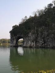 象鼻山不是很大,但背靠漓江山水,景色还是宜人。主要景点是象山,湖对面看去仿佛巨象饮水,故而得名。湖里可以坐竹筏游览,人还挺多。象山是可以登上去的,不高,上面可以看普贤塔,是一座古塔,样似宝瓶,象征吉祥如意。