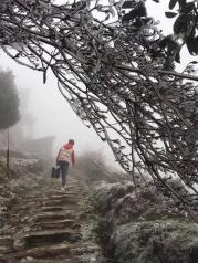 春节的时候去的龙脊梯田,那时候刚好是下雪后观赏的,山上的雾比较大,不能看见全景。从龙胜到龙脊真的是冰火两重天,这边已经是皑皑白雪了。其实现在已经不是看梯田最好的季节了,应该是秧苗播种前,那才是一番处处是镜面的美景呢。