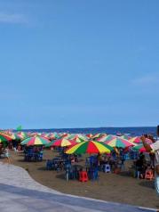 个人觉得还算不错,景色可以,就是大排档的做法太垃圾。建议不用吃海鲜。一家三口开车过来,中午的太阳太晒了。故此下午才去海滩泳游,黑沙滩的沙粒很犀利,如面粉一般,晚上可以去吃吃烧串,尤其是烤鱿鱼,再喝点啤酒,人生惬意啊。