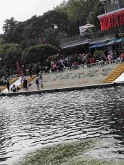 九马画山位于兴坪溯江而上四公里处的马山村,也是兴坪开始的这段竹筏漂流的终点了,我们在马山村里找了一个新开的客栈住下后,顺着安静的山村小道走到码头,春节去九马画山的人特多,船夫拉到九马画山马不停蹄往回赶,看的时间比较少,建议大家不要在节假日的时候游玩。