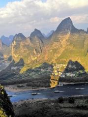 在兴坪漓江游玩了半天,感觉还不错,除坐船、划竹筏外,还可以攀登漓江两岸的高山,在落日的余晖中,欣赏两岸群山被染成金色的特殊场景,绝对振憾无比,比乘船要漂亮N倍,非常值得一游。