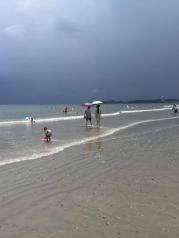 白浪滩的沙滩特色就是黑色沙滩,但沙子还是比较细,往海里伸下去的坡比较缓,很适合游泳,我们去的时候下了大雨,在大雨中海里游泳还有别一番风味!周边好像没什么换衣服冲淡的地方,但你要是在附近饭馆吃饭,每家饭馆都有换衣服冲凉的地方!