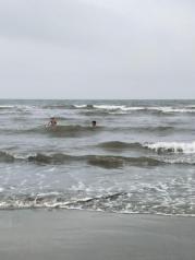 到白浪滩的时候已经是晚上6点多了,沙滩上的人已经不是很多了,因为天气不好,没能看到日落,不过依然很美。第二天早上去,水已经退下去了很多,沙滩上有很多小洞,中午以后就会有很多小螃蟹爬出来,海边还有一些娱乐的项目。