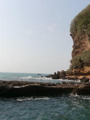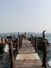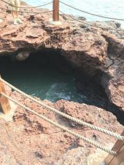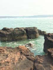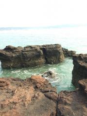 因为涠洲岛鳄鱼山公园没有树,这地方特别晒,而且还要爬上爬下比较耗费体力,不过就景色而言还是值得看的!蔚蓝的海水一波波地拍打着礁石,溅出白色的水花,有水滴落在脸上,凉沁沁的。从火山石到海枯石烂这一段路,美得让人陶醉。