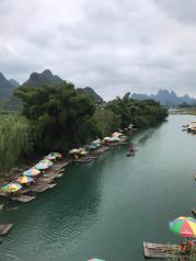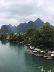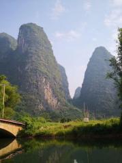 遇龙河风景如画,一个小村寨,一个小古桥,旁边一棵老树,桥下一条小河,就是遇龙河,比漓江漂亮很多,人在画中游的感觉。坐坐竹排,看看风景。给了10元小费,师傅划得很慢,一路很开心,不虚此行。