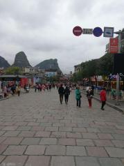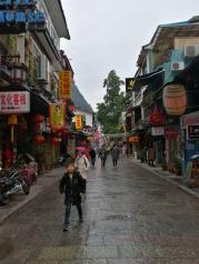 阳朔西街是一条具有1400多年历史的老街了,位于阳朔县城中心,全长约800米,宽8米左右,略呈东西走向。西街是阳朔重要的旅游景点之一,是集古今中外文化于一体的旅游景点和商业街,因为此处外国人聚集,故又称“洋人街”。西街的路面,全部用槟榔纹的大理石铺成,暗青油亮,颇有历史韵味。