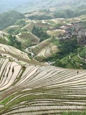 龙脊梯田非常的壮观,我是4月份去的,当时上山用了将近半天的时间,爬到山顶,住在全景楼,太阳已经快要下山了。第二天一早的早餐,油饼非常好吃,拍拍晨雾中的龙脊梯田特别美。随即下山,下面还有好几个观景台,都有不同的景色等着你!
