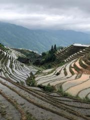 龙脊梯田还是比较有特色和壮观的,一二三号观景台都在金坑梯田里,所以金坑梯田是规模最大的梯田,也是离龙胜县城最远的梯田,旅行团一般不去,从龙胜县城出发游金坑梯田要一天时间。我们去的时候刚灌水,没看到郁郁葱葱的一片,应该过段时间去比较好!