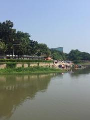 遇龙河风景秀丽,坐竹筏漂流,有种人在画中游的感觉,沿岸的景观很自然没有过多的修饰,河面不宽并且水清澈到可以见到河底的水草,很适合慢悠悠的撑竹筏,据撑筏的师傅说几年前河水更清的,可惜现在看不到了。