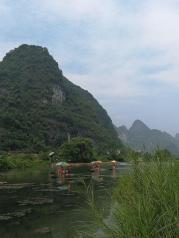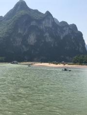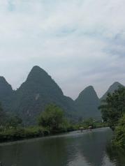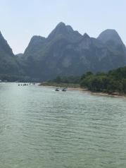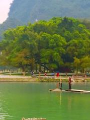 九马画山是漓江山水最经典的景观之一,在岸上或者游船上远远望去,凭借想象力,可以在山壁上看到骏马图案,据说能看出九匹马的人是状元之才。因为国庆缘故,我们此行程是从兴坪的竹排码头出发的,不是兴坪游渔码头,到达九马画山原路返回。1个小时的行程还是蛮惬意的。