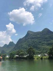 在遇龙河今天游竹筏天气太好了,很难碰上这样的天气~不晒而且微微的江风特别舒服☁️☁️来阳朔一定要游竹筏,有时间游全程5个小时最好!听说遇龙河比漓江的要舒服~因为漓江不能带7岁以下小孩坐所以没去,这里环境很幽静,而且竹筏工特别热情,我们走错路迟到两个小时都帮我们安排其他的竹筏,一路上给你讲解还停下来帮我们拍照,阳朔的景点值得来玩,由于赶时间其他地方没去了,下次还要来!