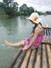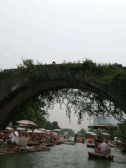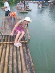 遇龙河网上上订好票,在坐上往金龙桥的公共汽车上时给联系人陈先生打电话,筏工吴师傅到车站等我们,开始了美丽的遇龙河漂流之旅。吴师傅技术很好,也很畅谈,一路上和我们聊天,告诉我们有照相和烤鱼收费项目,自愿消费。不过我们提前在网上了解过,消费一样能给筏工积一分,就当帮忙,买了照片和吃烤鱼。烤鱼味道实在不怎么样,不值六十元半条。遇龙河风景很美,很休闲,安静的旅程。夏季建议早点去漂,没那么晒。我们去的那天是阴天,一个多两个小时漂完。在旧县有面包车可以坐回阳朔,五十元一部,可拼车。我们选择租单车踩回去,路经十里画廊。一路上有好几个景区,风景不错,就是灰尘有点多。到月亮山旁边看了一眼,其他景区都没有进去看。