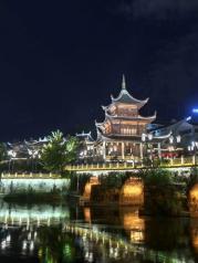 甲秀楼是贵阳的骄傲,作为主古建筑,来这里的游客天天络绎不绝,她的夜景在灯光的衬托下,比白天更加漂亮,古香古色的木结构建筑,在南明河上有600多年的历史了。