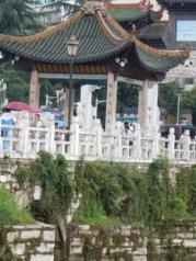 访过湖南的岳阳楼。。到了贵阳,怎么也不能错过它的标志性建筑甲秀楼。雨中的楼宇,上游的雨水绕过楼宇奔向下游,气势磅礴,独特。一步之遥还有微园。出来甲秀楼,到马路对面向左走,沿着文昌南路可以到文昌阁。可惜景点内部成了茶馆。