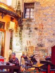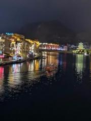 镇远的古巷很有特色,号称“爬坡上坎、拐弯抹角、巷中有巷、巷对码头、深宅大院”,这个形容可以说是非常贴切了。逛着逛着天黑了,灯亮了,行人多了,古镇五光十色的夜生活开始了。临河的餐馆在空地上摆开桌椅,空气中弥漫着酸汤鱼的味道。酒吧一条街跟北京后海差不多,音乐、灯火、美食构成了古镇热烈的夜晚。