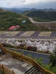 大韭菜坪有两个门:东门和西门,东门更大,设备更齐全,可以坐缆车;西门小,人少,坐观光车或小火车上山,价格较缆车便宜;两边的地势不一样,景致会不同,如果天气好,坐缆车看风景会更壮观。韭菜确实谢了很多,但看到这样的景色也不觉得遗憾。如果有机会还可以再来。山上风很大,海拔最高的地方是2700左右,没有高原反应。