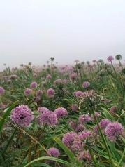 大韭菜坪景区里也有住宿,但也在山下,离景区外的住宿隔着一道大门,没有太大意思,上到山顶还需乘座观光车。观光车单边25,缆车单边40。清晨的韭菜坪气温只有18度左右,需要穿较厚的外套。观光车下来还需爬20多分钟的台阶,然后左转可以很快到玻璃栈道,右转顺着木栈道往前走可以观日出。当天的云层有点厚,直到天色发白也没有看到日出,略感失望。贵州有大小2个韭菜坪,相距不远,其中小韭菜坪是贵州第一高峰,花没这边多,在六盘水境内,大韭菜坪为贵州第二高峰,在赫章境内,有连片10万亩野生韭菜花。摘下一片韭菜叶闻之,果然和我们吃的韭菜味道一模一样,网上说这叶子不能吃,当地人说可以吃,就是有些老。但野生韭菜花花朵可比