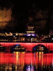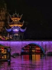 祝圣桥位于贵州省镇远县城东中河山,始建于明朝洪武年间。原名"溪桥",后因为康熙大帝祝寿,改为"祝圣桥"。它不仅在贵州,甚至在西南地区都是比较长的一座桥。 这座桥全是青石建造而成,桥墩是明代的,而桥身却是清代的,它的始建年代是明初洪武二年,据说当时因为阳河爆发山洪,该桥数次被冲毁。因此直至雍正元年即1723年才修建完成。夜景更好看