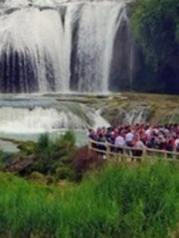 黄果树瀑布景区分三块,黄果树瀑布,陡坡塘,天星桥。180门票,40还是50的车票。摆渡车连接三个景区,景区内全靠走。之前做了功课,旅行团会吧大瀑布放在最后,所以我们先去大瀑布,摆渡车顺序是第一站陡坡塘,第二站大瀑布,第三站天星桥。这时候我的攻略精华要闪现了,比如你要去大瀑布,摆渡车到陡坡塘停车,大部分游客会下车检票进入陡坡塘景区去参观,但是摆渡车却不继续开去下一站,它是在排队。这时候你最好下车,走到景区换乘站坐最前面的一辆要去大瀑布的车走,要是一直在原车等,不知道要等到什么时候。